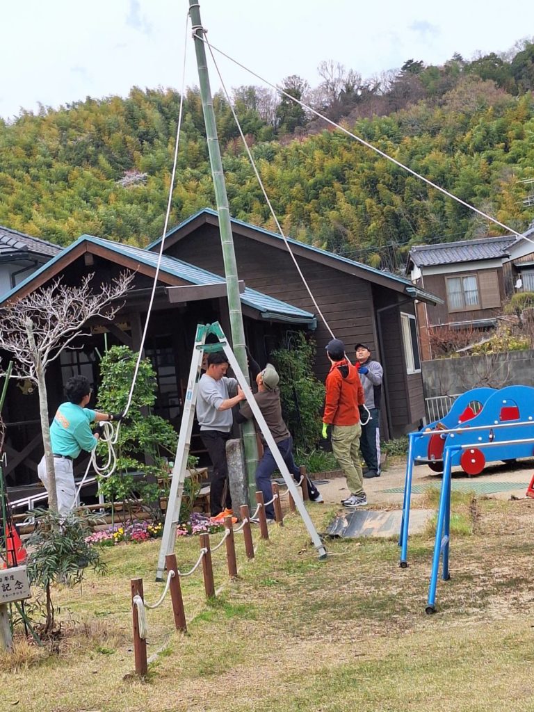 バランスを取りながら、チームワークで無事立てることが出来ました。ボランティアのみなさんありがとうございました。