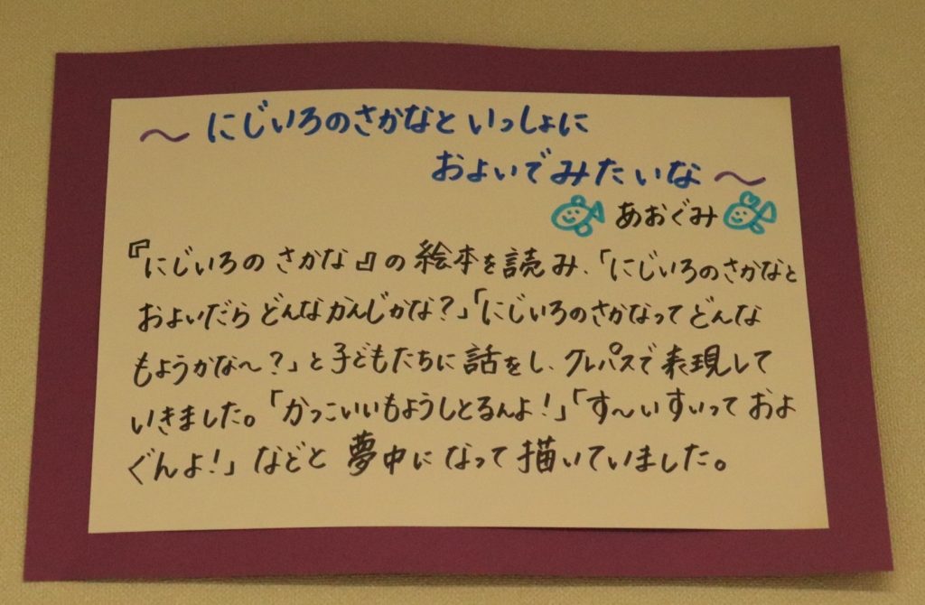 にじいろの魚たちと子どもたちが楽しそうに泳いでいます。なんともおしゃれな魚たちです!